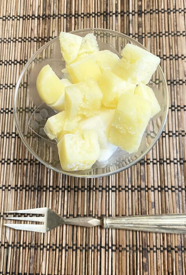ジャガイモとネギの味噌汁。「山形のだし」が美味しいという話、随分前から聞いていたが、初めて食べた。本当に美味しいものだった。なるほど、なるほど。納得!