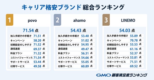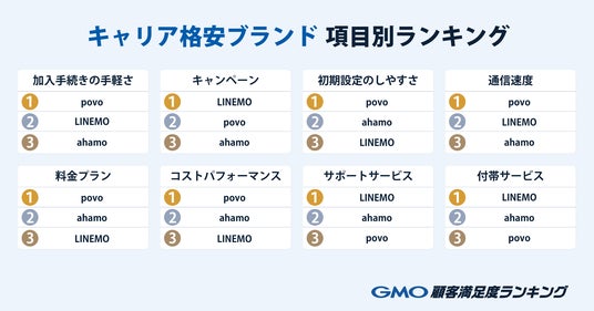 GMOインターネットグループで、インターネットリサーチ事業を展開するGMOリサーチ&AI株式会社(代表取締役社長:荻田 剛大 以下、GMOリサーチ&AI 略称:GMO-R&AI)は、同社が運営する「GMO顧客満足度ランキング」において、2025年の「キャリア格安ブランド」(※1)カテゴリのランキング結果を2025年9月10日に公開しました。本ランキングの総合ランキングでは、povo(運営:KDDIグループ KDDI Digital Life株式会社)が1位を獲得しました。