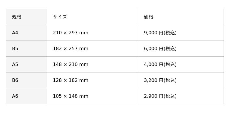 存在感のあるA4サイズから、持ち運びにも便利なA6サイズまで、ユーザーの使用シーンに合わせたサイズ展開となっております。