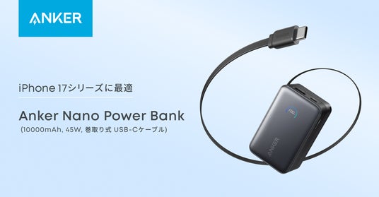 米国・日本・欧州を中心にデジタル関連製品でトップクラスの販売実績を誇るAnkerグループの日本法人、アンカー・ジャパン株式会社(本社:東京都千代田区、代表取締役CEO:猿渡 歩)は、5年連続で世界No.1モバイル充電ブランド(※)に認定された「Anker」において、「Anker Nano Power Bank(10000mAh, 45W, 巻取り式 USB-Cケーブル)」を2025年9月10日(水)よりAnker Japan 公式オンラインストア(製品ページ:https://www.ankerjapan.com/products/a1638)、直営店 Anker Store、総合オンラインストアAmazon.co.jp(製品ページ:https://www.amazon.co.jp/dp/B0DNLVY85L)、楽天市場(製品ページ:https://item.rakuten.co.jp/anker/a1638/)および一部家電量販店等にて販売開始いたします。