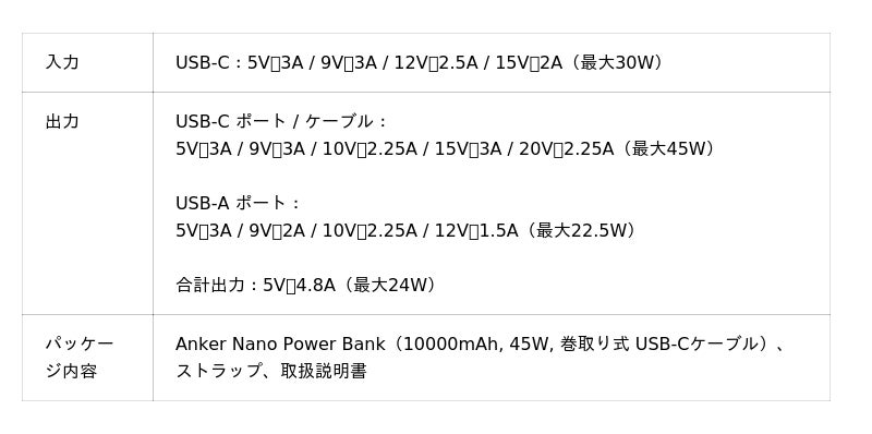 - 大容量かつ高出力:スマートフォンを約2回充電できる10000mAhの安心の大容量で、最大45W出力で最新のiPhone 17シリーズへも充電が可能。さらにUSB急速充電器に直接繋ぐと最大30Wで本体へ入力もできる他、パススルー充電も可能です。
