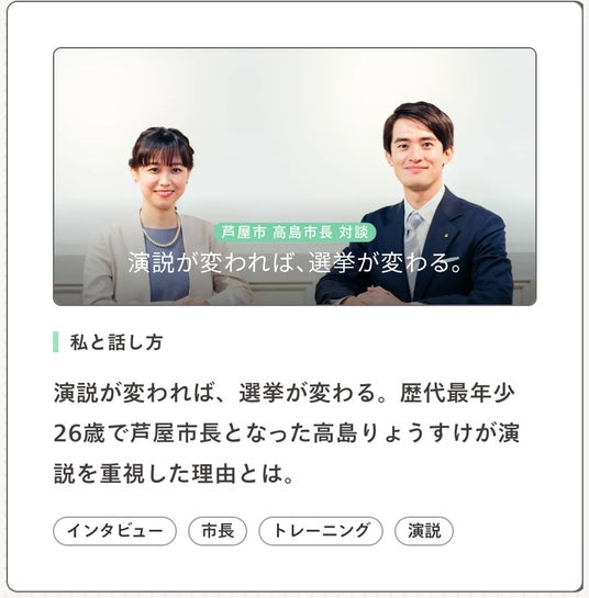 導入前後の変化や学びを「ビフォーアフター」として伝え、話し方が人生やキャリアにどのような影響を与えるかを等身大で描きます。