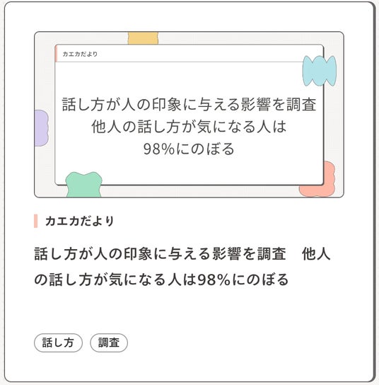 ▪️カエカだより話す力を数値化し、課題解決につなげるkaekaの最新ニュースや調査を発信。