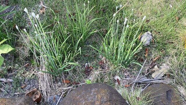 ツンと伸びている白い蕾。カワイイ。調べたら野蒜(ノビル)。え〜こんな季節に野蒜? 紅茶。