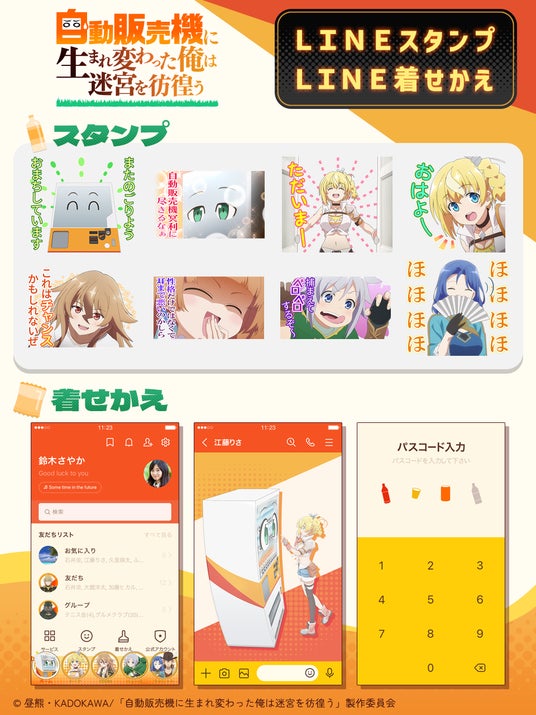 株式会社エムアップホールディングス(所在地:東京都渋谷区、代表取締役:美藤 宏一郎)の連結子会社であるキャラクターやアニメIPを活用したコンテンツ配信やコラボ実施を手掛ける株式会社 Creative Plus(所在地:東京都渋谷区、代表取締役:加藤 周太郎)は、LINEスタンプ・LINE着せかえ TVアニメ『自動販売機に生まれ変わった俺は迷宮を彷徨う』((C) 昼熊・KADOKAWA/「自動販売機に生まれ変わった俺は迷宮を彷徨う)の配信を開始したことをお知らせいたします。