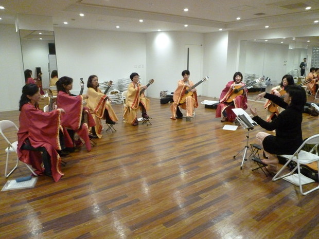 「アンサンブルスタジオ」では、衣装を着てギター合奏の練習中!