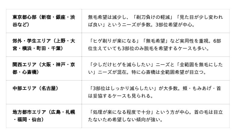■【エリア別で異なる「男性の美容意識」】:各院の「ヒゲ脱毛」傾向を調査