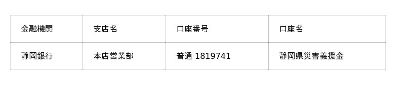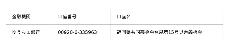 令和7年台風第15号により、被災された方々へお届けする義援金の募集を、静岡県、日本赤十字社静岡県支部及び静岡県共同募金会において、次のとおり実施します。