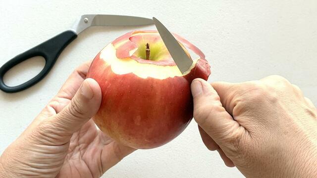 リンゴの皮むきで、実際どのくらいむけるのか試してみました。