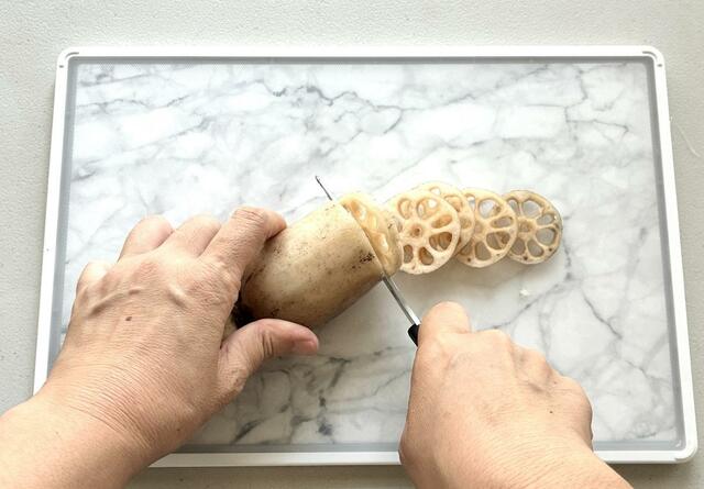 固い根菜(割れやすいレンコン)も、すいすいスライスできました~。