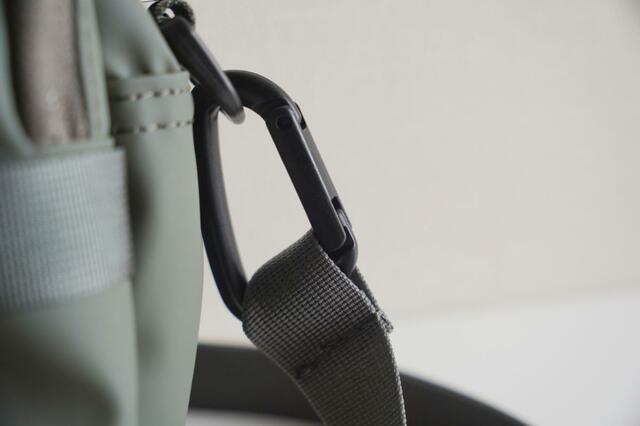 ショルダー部分も物を引っ掛けることができるウェービング仕様で、細かいところまでよくつくられたバッグだなぁと、愛用中です。