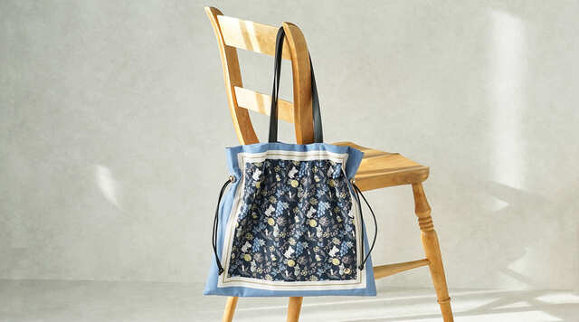 華やかなスカーフのようなプリントと、ふんわりとした軽やかな素材を組み合わせた「ふんわり華やぐ ムーミンのスカーフトート」。