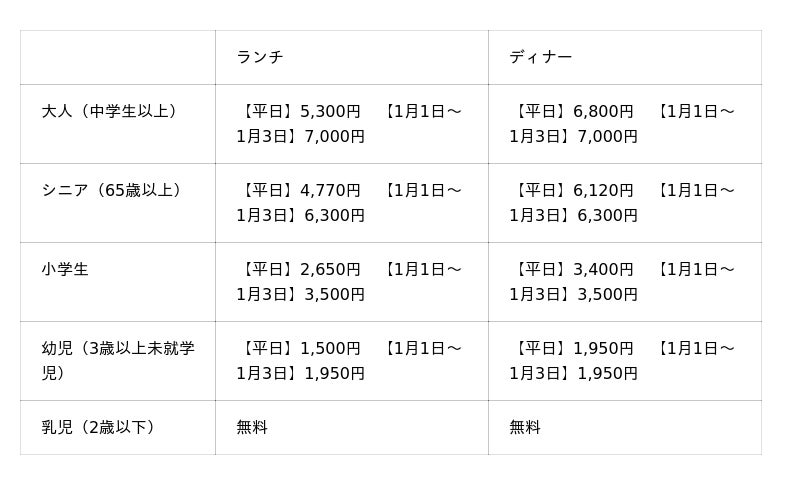 ※クリスマス期間・年末年始は料金が異なります。詳しくはお問い合わせください。