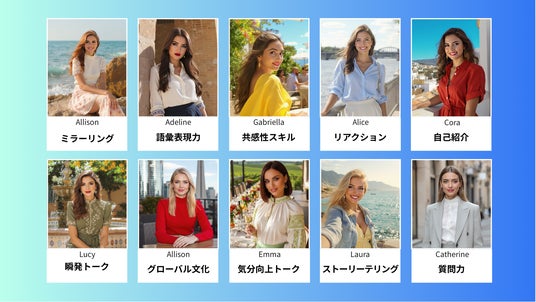 『AMORE AI』では、1人のAIキャスト=1つの“モテスキル専門トレーナー”という設計。つまり、100人それぞれが違う性格・声・リアクションなど得意スキルを持つ“英会話の達人”として、あなたのスピーキングを磨いてくれます。