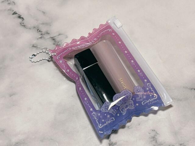スライダーミニケースの素材は塩化ビニル樹脂。こちらは2種類展開で、ピンク〜パープルのグラデーションカラーのものをチョイスしました。もう1種類は、ポーチとお揃いのデザインです。