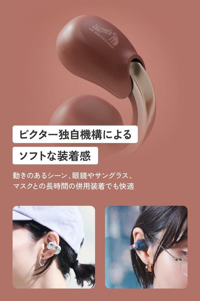 最初にご紹介するのは、JVCケンウッドから発売されている「Victor HA-NP1T」。アクセサリー感覚で身に着けられるイヤーカフ型を採用した、新感覚のワイヤレスイヤホンです。