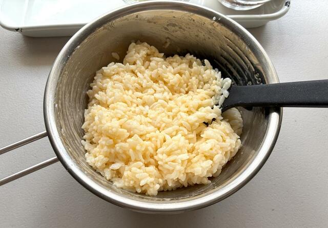 冷たいごはんに溶き卵とラードを混ぜ……