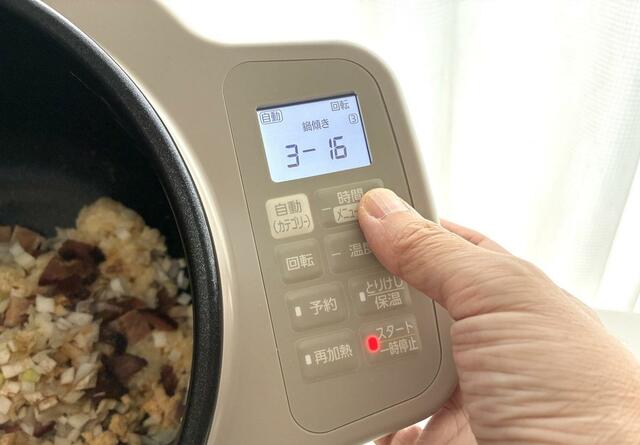 オートメニューでチャーハンに設定したらスタートボタンを押すだけ。