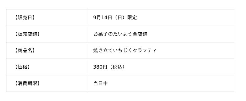 株式会社太陽社(所在地:千葉県匝瑳市飯倉293、代表取締役:片岡正裕)が展開する、千葉県で長年愛され続ける菓子店「お菓子のたいよう」は、2025年9月14日限定で、旬の採れたていちじくを使用した「焼き立ていちじくクラフティ」を販売いたします。