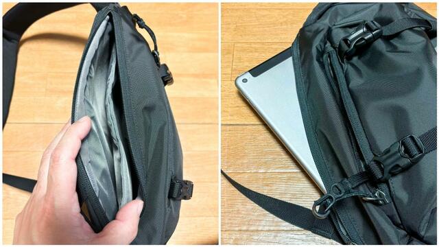 ボディバッグでタブレットが入るのはめずらしいかも。これも購入の大きな決め手となりました。