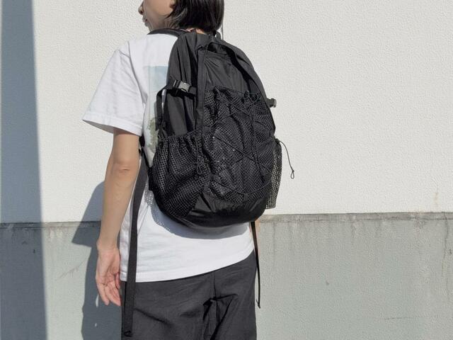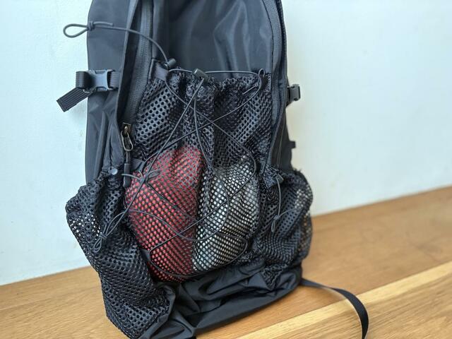 デザイン的な特徴にもなっているのが、ULバックパックの象徴ともいえそうなフロントメッシュポケット。
