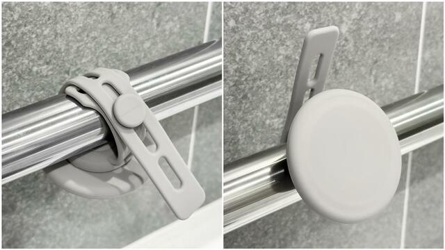 設置方法はとってもシンプル。シリコン製のやわらかいバンドを巻き付けて、ボタンで固定するだけ。