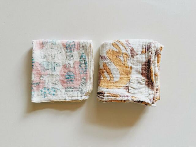 最初は無地のシンプルなガーゼばかり使っていましたが、子どもとのお出かけが増えると「大人も一緒に楽しめる、かわいいものが欲しいな」「長く使えるものがいいな」と思うように。