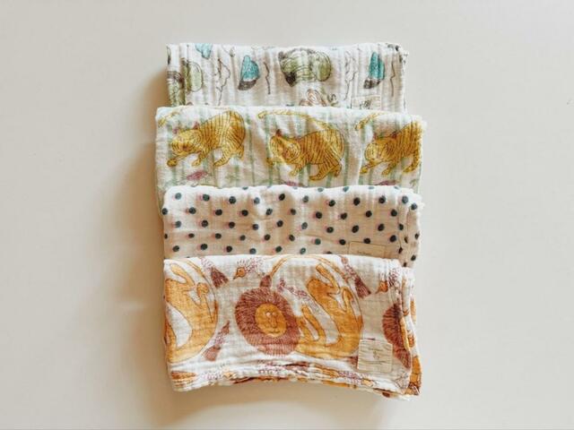 赤ちゃんのお世話以外でも使う頻度が増えて、ついついリピ買い。愛用歴3年の現在では、こちらの4枚をフル活用しています。