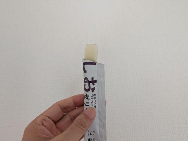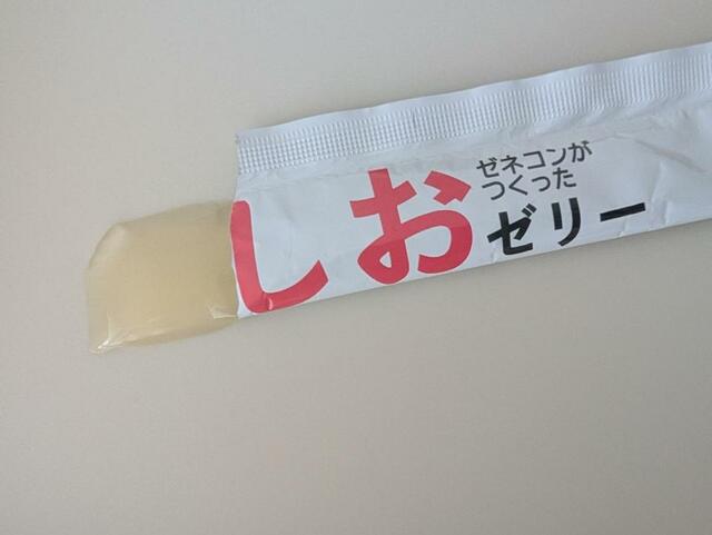 中身は、いわゆる普通のゼリーで、爽やかなフレーバーの中にほんのり塩味を感じる、すっきりとした味わいです。