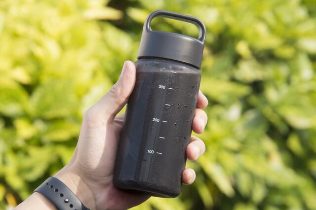 もちろんボトル単体でも持ち歩きやすい無印良品の「持ち運びやすい 目盛り付き ドリンクボトル」。