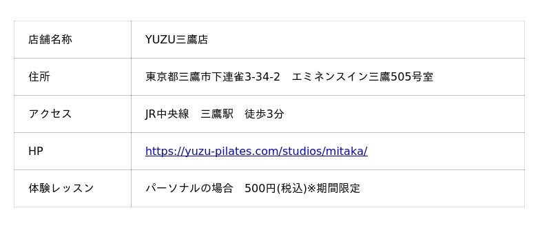 三鷹駅に、ココロとカラダの健康美をサポートするピラティスレッスンを提供しているYUZUが通算55号店目を10月にOPEN!