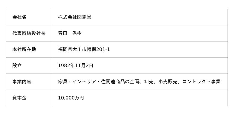 株式会社関家具 会社概要