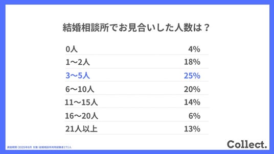 「3~5人(25%)」が最も多く、「6~10人(20%)」が続きました。複数人と出会えることから、効率的に結婚相手候補と向き合える場としての価値が示されました。