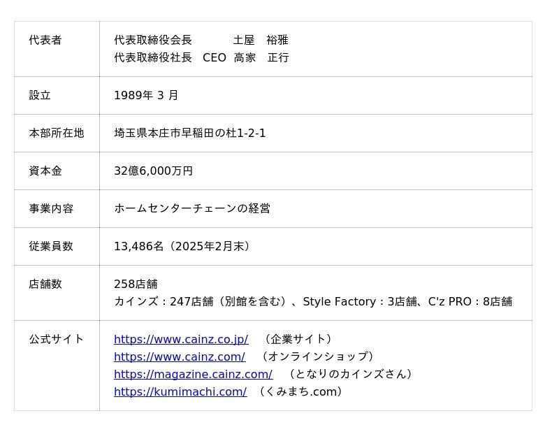 株式会社カインズは、29都道府県下に258店舗を展開するホームセンターチェーンです。