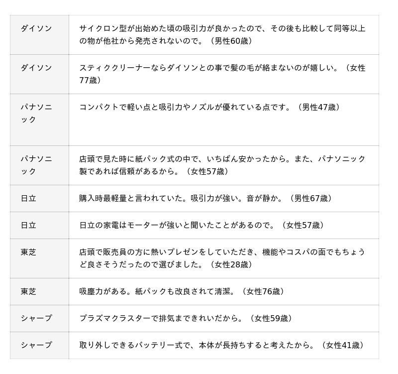 ☆そのメーカーの掃除機を選んだ理由(全7,341件)