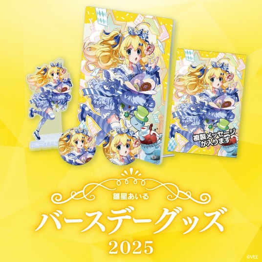 株式会社ソニー・ミュージックエンタテインメント(本社:東京都千代田区、代表取締役社長:村松 俊亮)は、バーチャルタレント育成&マネジメントプロジェクト「VEE」の公式オンラインショップ「VEE Official Shop」にて、所属バーチャルタレント「雛星あいる」のバースデーグッズの受注販売を開始したことをお知らせします。
