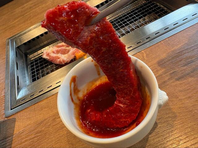 肉質は柔らかく、旨辛のタレがしっかり染み込んでいて、ジューシーさが際立ちました。焼くと香ばしさが増して、箸が止まらなくなる味わいです。