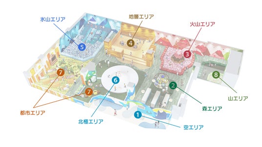 ちきゅうのにわの8つのエリアと地球の面白さに満ちた遊びのコンテンツ