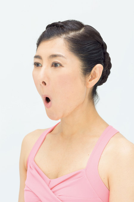 口を「おー」の形にして、ほうれい線に力を入れて、ギューッと伸ばします。「力を入れて→抜く」を繰り返しましょう。