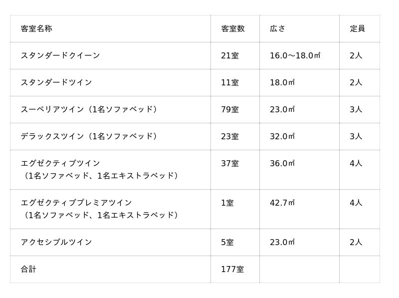 ・グループやファミリーでの利用ニーズに対応するため、ツインルーム・トリプルルームを増設、フォースルームを新設し、3~4名でご宿泊いただける客室を20室から140室へ大幅に増設。さらに、全ての客室で水回りの設備を一新。
