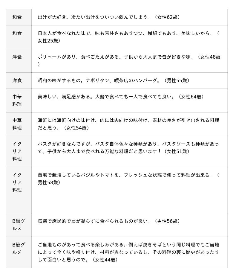 好きな料理ジャンルや苦手なジャンル、外食で食べたいジャンルなどについて聞いています。調査結果をお知らせいたします。