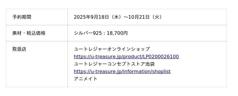 「あなたの好きをカタチに・・・」ファンの方々の「好き」をジュエリーというカタチにし、身に着ける喜びを提供したいという想いからユートレジャーが立ち上がりました。デザイナーや熟練した各分野の職人が、着け心地や存在感、耐久性・強度を追求し、「一生の宝物になるようなジュエリーをお届けしたい」という想いを込めて丁寧に製作しております。細部にまでこだわった品々をぜひお楽しみください。