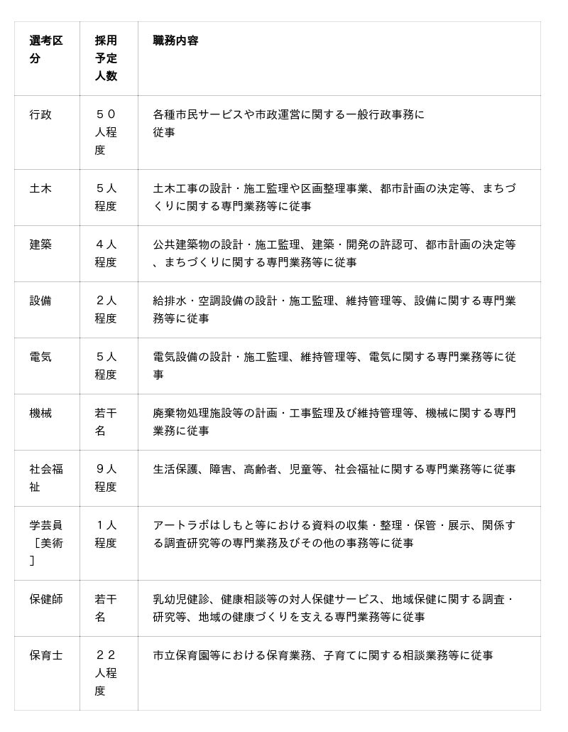 ※ 選考内容・選考日程等詳細は市ホームページよりご確認下さい。