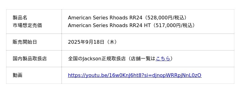フェンダー ミュージカル インストゥルメンツ コーポレーション(所在地:米国 カリフォルニア、CEO アンディ・ムーニー、以下FMIC)は、エレキギター/ベースブランドのJackson(R)︎より、名門「American Series」の新たなラインナップとして、『American Series Rhoads RR24』および『American Series Rhoads RR24 HT』を発表し、2025年9月18日(木)より販売を開始します。