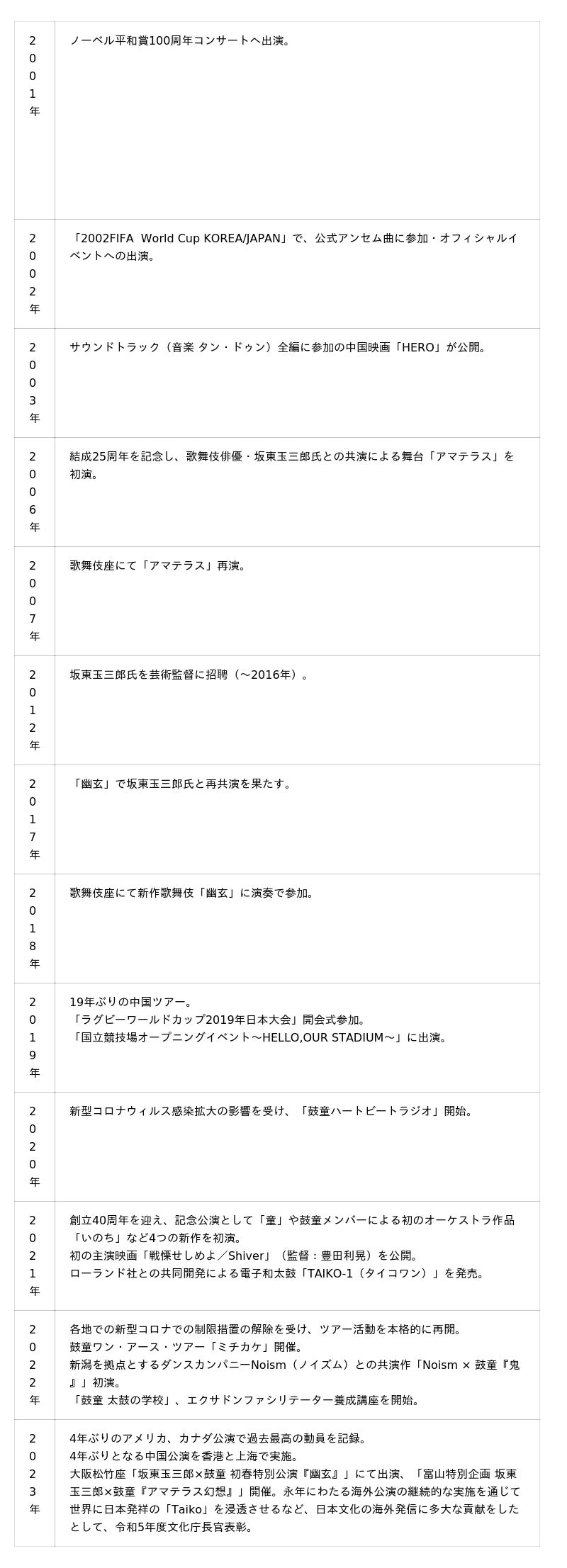 新潟県佐渡島を拠点に太鼓を中心とした伝統的な音楽芸能に無限の可能性を見いだし、現代への再創造を試みる集団です。1981年、ベルリン芸術祭でデビュー。以来50以上の国と地域で7,000回を越える公演を行っています。2021年には創立40周年を迎えました。劇場公演のほか、小中高校生との交流を目的とした「交流学校公演」、ワールドミュージック・クラシック・ジャズ・ロック・ダンスパフォーマンスほか異なるジャンルの優れたアーティストとの共演や、世界の主要な国際芸術祭、映画音楽等へ多数参加しています。