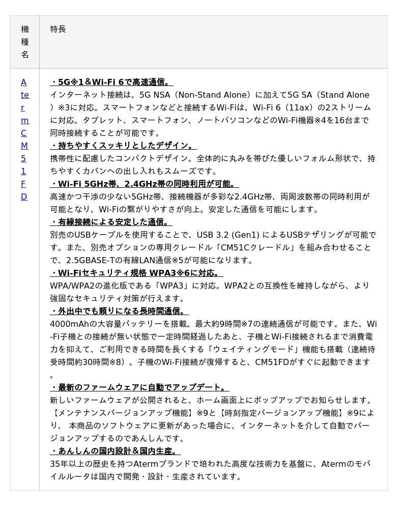 株式会社NTTドコモ(以下、ドコモ)は、さまざまなシーンで高速&快適な5G※1モバイルルータ 「Aterm CM51FD」を2025年11月以降※2に発売いたします。