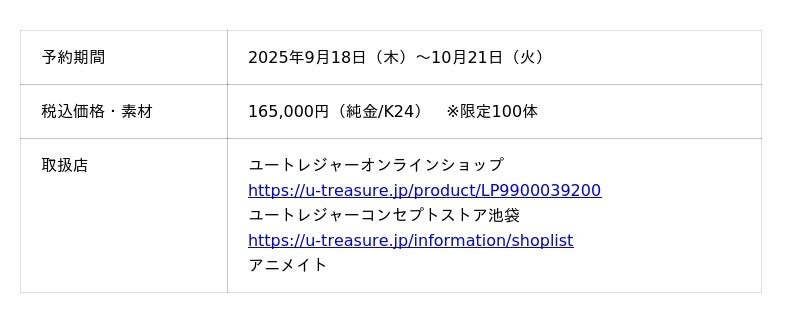 株式会社ユートレジャー(本社:東京都新宿区、代表取締役社長:青木 興一、株式会社ケイ・ウノの連結子会社)は、TBSの人気番組『ラヴィット!』の公式マスコットキャラクター「ガガンモ」とのコラボレーションアイテム「ガガンモ 純金ミニフィギュア」の予約受付を2025年9月18日(木)~10月21日(火)の期間、ユートレジャーオンラインショップ、ユートレジャーコンセプトストア池袋にて行います。100体の数量限定です。