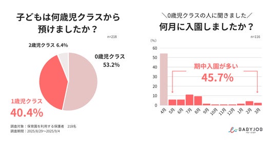 - 0歳児クラスの45.7%が4月以外の「期中入園」。 復帰タイミングが多様化