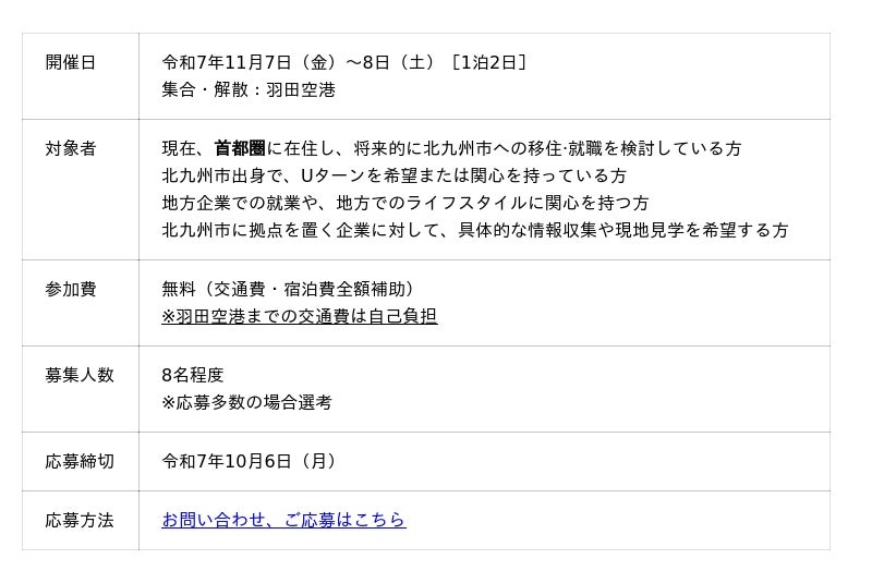 本ツアーは、北九州市が持つ独自の産業や暮らしの魅力を直接体験することで、U・Iターン