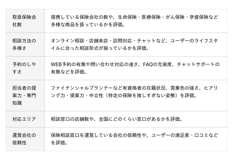 さらに、各保険相談窓口については、当メディア独自の調査と実ユーザーから投稿された口コミを掛け合わせたランキングを掲載。評価基準の透明性を重視し、指標ごとの強み・弱みを見える化することで、より利用者の目線に近い比較を実現しています。コンテンツは定期的に更新し、新機能の追加やキャンペーン情報にも随時対応していきます。